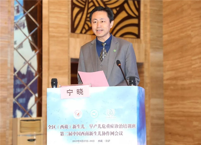 西藏阜康醫療股份有限公司總裁、西藏阜康醫院院長寧曉代表承辦方對中華醫學會兒科分會新生兒學組、中國西南新生兒協作網、重慶醫科大學附屬兒童醫院新生兒中心和西藏醫學會兒科專委會的信任和支持表示謝意,并預祝會議取得圓滿成功;