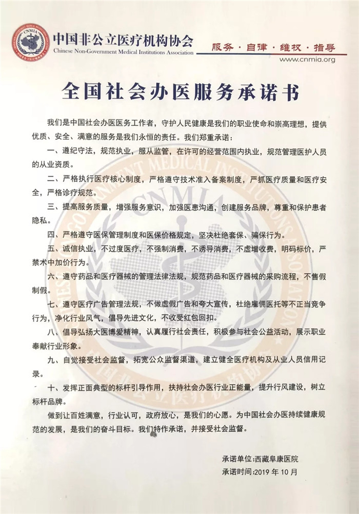 阜(fu)康(kang)公司企業文(wen)化-阜(fu)康(kang)精神為(wei)"幸福員工、成就自我(wo)、健康(kang)中(zhong)國(guo)”,西(xi)藏阜(fu)康(kang)醫院(yuan)會以健康(kang)中(zhong)國(guo)為(wei)理(li)念(nian),為(wei)西(xi)藏百姓健康(kang)貢獻自己(ji)的一(yi)份力量。