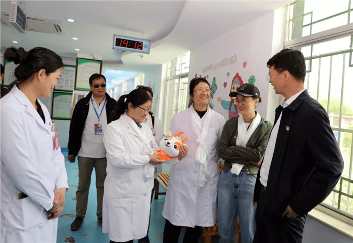 義診期間,中共中央統戰部七局處長郭鵬與"同心共鑄中國心”駐西藏秘書長趙士磊來到了阜康婦產兒童醫院詳細查看了正在井然有序進行的義診現場,在王斌董事長陪同下參觀阜康婦產兒童醫院院區,聽取并查看了我院人類輔助生殖醫學中心等特色科室的開展情況。