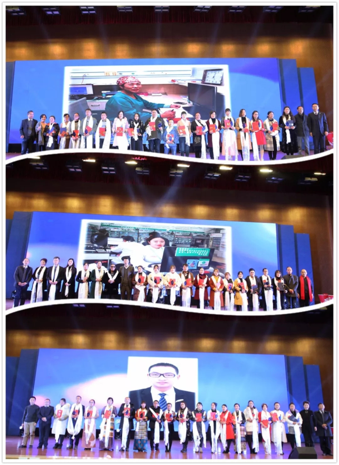每年的先進集體和個人表彰是本次大會的重點,李君院長宣講了今年"評優選先”的規則:以工作成績為依據,杜絕人情票,通過申報審核的方式評選。隨后,李院長宣讀了2018年先進集體和優秀個人名單,董事長王斌率院領導為先進集體和優秀個人獻上哈達并頒發榮譽證書、獎杯和獎金。