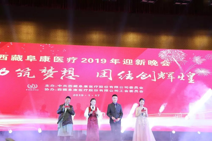 2019年1月17日16時,西藏阜康醫療股份有限公司全體員工在拉薩洲際酒店舉行了主題為"永遠做低調、安全、規范、負責、創新、團結、感恩、用心服務的共享、平臺化醫藥企業” 的2018年度總結表彰大會,大會回顧了2018年醫院工作開展情況,明確了2019年的現代醫院管理的基本方針,制定了2019年醫院具體工作規劃及發展目標,為西藏阜康全體員工指明了方向。19時,西藏阜康醫療2019迎新晚會拉開帷幕,本次特邀嘉賓有西藏雅喜實業有限公司董事長張廷文,西藏奇正藏藥股份有限公司副總裁兼行政總監王志強,西藏雅博士口腔醫院董事長朱群林,農行拉薩分行副行長達娃卓瑪,農行城北支行黨委書記、行長索朗丹增,農行拉薩分行公司部總經理劉紅花等各位嘉賓。西藏阜康醫院業務院長何靜為本次大會主持人。