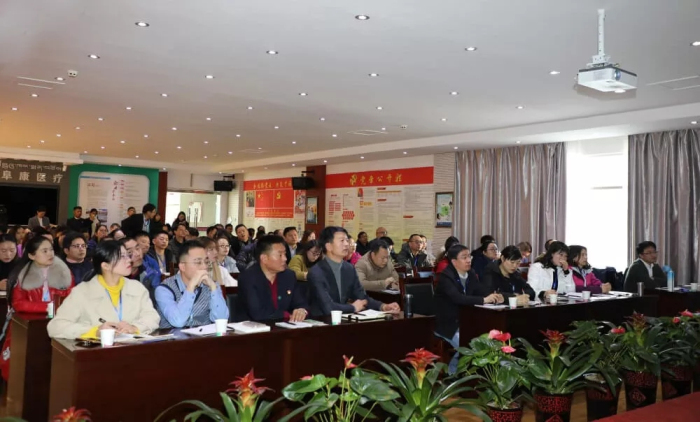 正式開講前,文進副所長代表四川大學華西醫院醫院管理研究所向阜康醫療贈送了醫院管理專業書籍,西藏阜康醫療股份有限公司黨委書記、董事長王斌接受了饋贈。王斌隨后向與會老師、同學介紹了阜康醫療的創業歷程。從2005年開始,經過全體員工13年的不懈奮斗,阜康由當初只有70張床位的小醫院發展成為530張床位,工作人員1057人,集醫療、教學、科研、預防、保健、康復、急救和社區衛生服務于一體的西藏民營醫療機構,在醫學領域開創諸多全區之先河,為西藏的醫療事業發展、保障各族群眾的身體健康作出了巨大貢獻。