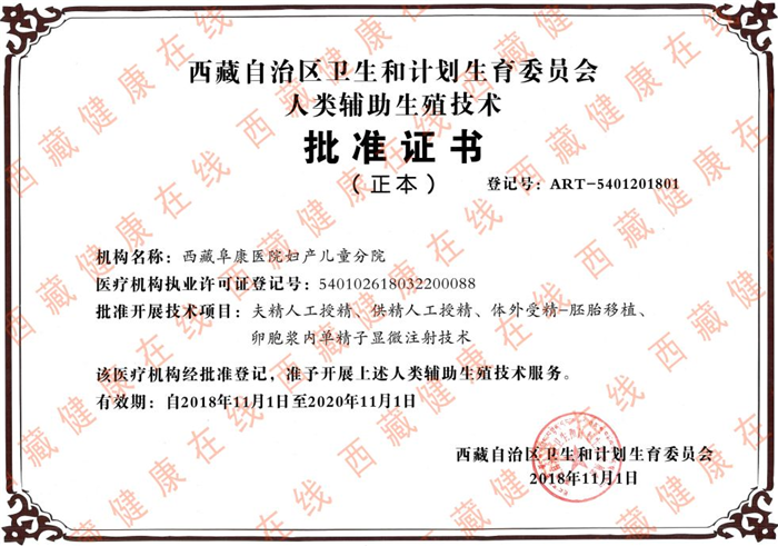 最后,通過國家衛健委專家組集體表決:西藏阜康醫院婦產兒童分院生殖醫學中心開展的常規體外受精-胚胎移植(IVF-ET)技術、卵胞漿內單精子顯微注射(ICSI)技術、夫精人工授精(AIH)及供精人工授精(AID)技術工作校驗合格。專家組一行還對西藏阜康醫院的企業文化建設、阜康多年來熱心參與社會公益事業的善舉表示贊賞。