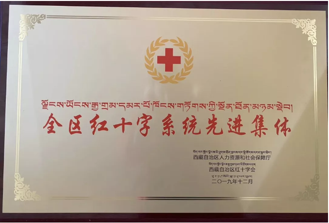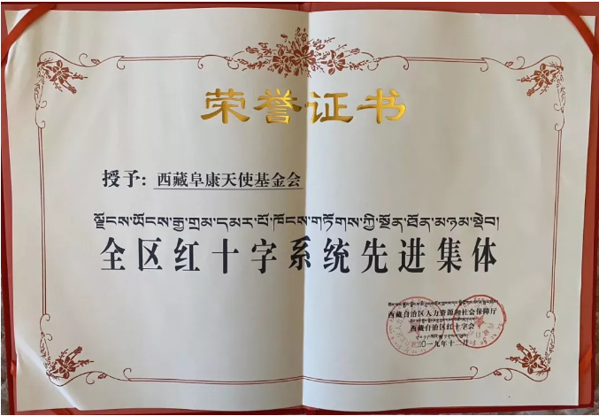 西藏阜康天使基金會榮獲"全區紅十字會系統先進集體”榮譽稱號