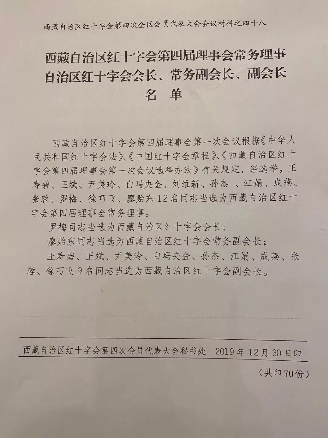 2019年12月(yue)30日上午10:30,西(xi)藏自(zi)治區紅十字會(hui)第四次(ci)全區全員代表(biao)大會(hui)在拉薩(sa)飯店舉行。