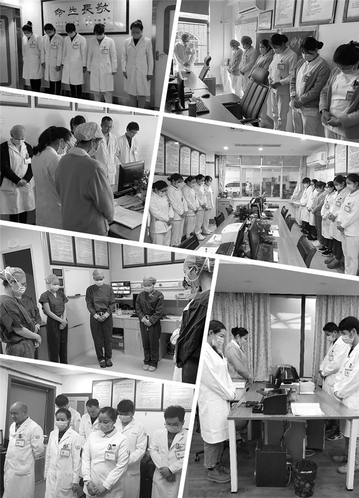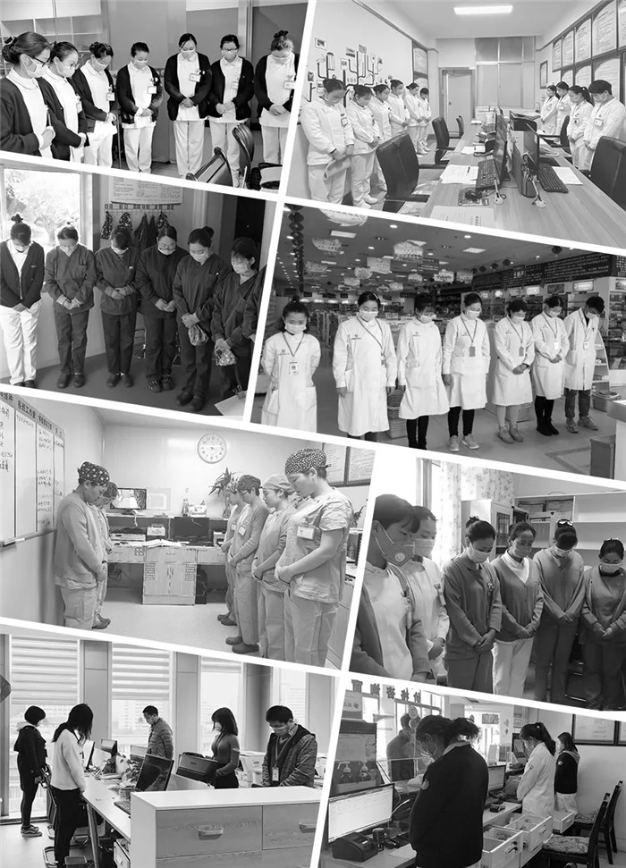 上午10點,隨著防空警報拉響,阜康醫療全體黨員和醫務工作者、行后人員分別在阜康醫院各院區、各科室、各藥房肅穆站立、低頭默哀。在這次疫情的特殊期間,有些人倒下了,但更多的人勇敢地扛起責任,在黨中央的堅強領導下和疫情頑強斗爭,如今我們已經基本控制這場斗爭的局面,正在向全面勝利努力奮進。