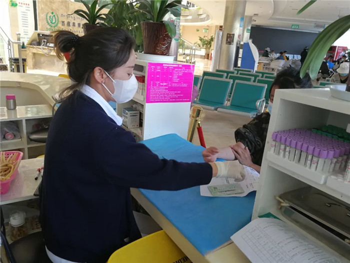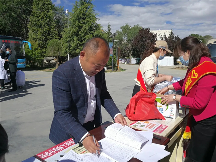 六月九日上午十點,西藏自治區血液中心的兩輛大巴開進了阜康體檢中心的大院。早已等候在此獻血的阜康員工,身影開始躍動。