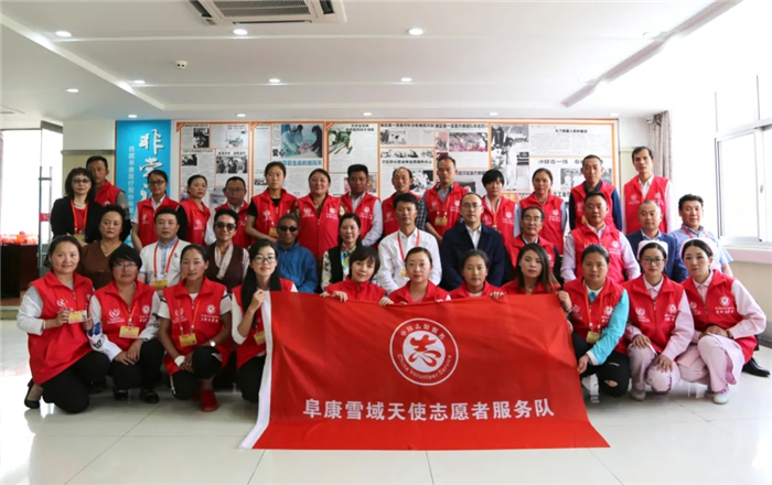西藏阜康雪域天使志愿者服務隊成立于2017年,以"奉獻、友愛、互助、進步”為宗旨,在患者就診秩序維護、敬老助殘、醫療解答、保護環境、社區義診、健康講座、送醫送藥下鄉等領域開展了多種形式的志愿活動。