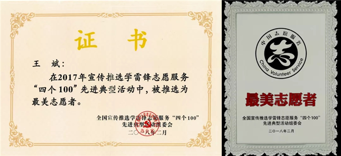 西藏(zang)阜康雪域天使志愿(yuan)者(zhe)(zhe)服(fu)務隊隊長王斌,在2017年學(xue)雷鋒志愿(yuan)服(fu)務"四個100”先進典型活動中,被推選為最美志愿(yuan)者(zhe)(zhe)。