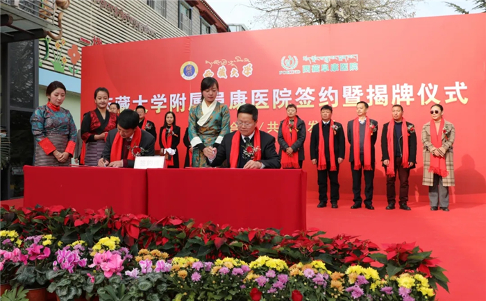 4月7日,西藏大學附屬阜康醫院簽約暨揭牌儀式在西藏阜康醫院婦產兒童院區隆重舉行。來自西藏工商聯、教育、衛生、醫療、金融、科技等西藏各界的嘉賓,見證了這一可載入西藏教育界、醫療界史冊的大事件。