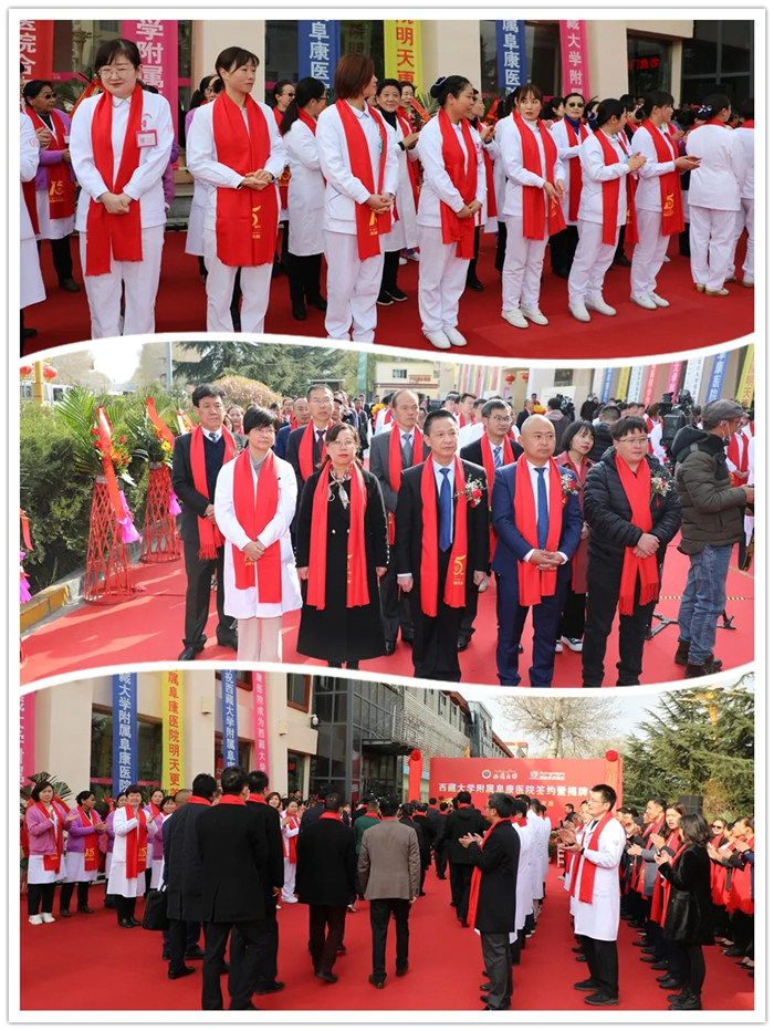 在西藏大學附屬阜康醫院簽約暨掛牌儀式現場,來自合作雙方的西藏大學領導、各教研組等三十余人,以及阜康醫院領導及部分專家和科主任一百余人參加了儀式。