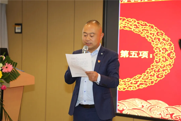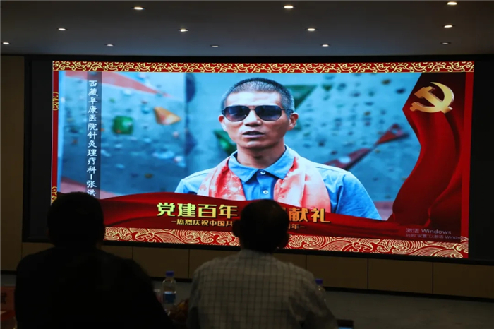 會議在雄壯的國歌聲中隆重召開。亞洲第一位登頂珠峰的盲人——阜康醫院針灸理療科張洪醫生從國外發來祝福視頻;會議播放了中國共產黨百年述職專題片,公司全體黨員一起學習了百年黨史。