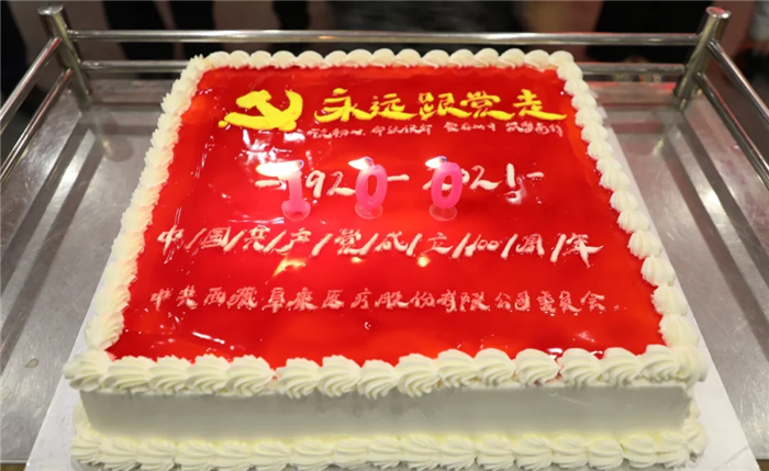 在中國共產黨建黨百年的歷史時刻,西藏阜康醫療黨委還專門制作了慶祝中國共產黨建黨100周年生日蛋糕,全體黨員共同慶祝黨的百年生日,有力傳達了"永遠跟黨走”的鏗鏘心聲!
