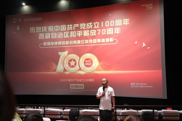 為深化黨史學習教育,激發愛國情懷,增強全體黨員的榮譽感、使命感,值此中國共產黨成立100周年之際,2021年7月1日晚,西藏阜康醫療股份有限公司黨委統一組織觀看電影《1921》。公司黨委專職副書記劉連福同志與全體黨員、員工一起重溫中國共產黨人在風雨如磐中擔起了救亡圖存重任,讓中國革命前途煥然一新的故事。