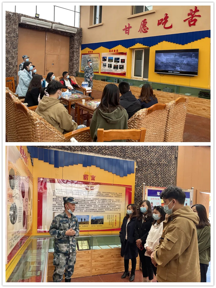 阜康一行觀看了甘巴拉雷達站的紀錄片,與甘巴拉官兵進行了親切交流溝通。在陳列墻前,一位官兵還向阜康一行講解了甘巴拉的艱苦發展歷程和感人事跡,阜康人深為感動。