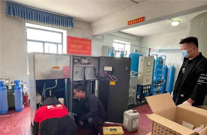 此次慰問,同行的還有西藏圣海諾科技有限公司總經理朱永強及其公司員工一行,為其保養制氧機設備。