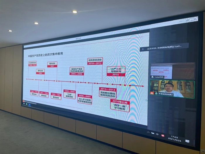 9月23日至24日,西藏阜康醫療黨委在全公司范圍內組織開展黨的歷史學習教育活動,邀請廣州輕工職業技術學院馬克思主義學院劉紅衛教授為全體黨員干部遠程講授"社會主義革命和社會主義建設”專題講座。
