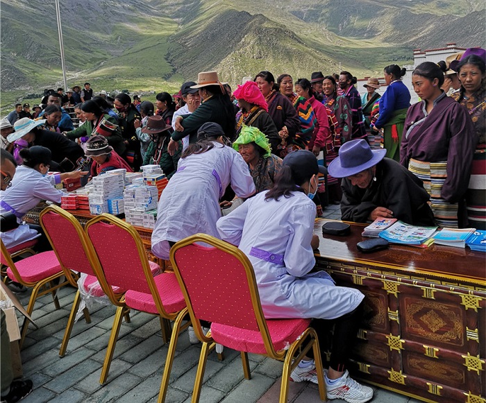 當天(tian)上(shang)(shang)午(wu),全(quan)國婦聯(lian)宣傳部、自治區婦聯(lian)、拉薩市婦聯(lian)、那曲市婦聯(lian)一行來(lai)到(dao)(dao)安置點為(wei)群(qun)眾贈(zeng)送了藏漢(han)雙語書籍。阜康義診工作隊也來(lai)到(dao)(dao)現場為(wei)安置點居民量血壓、檢(jian)查病(bing)情(qing)并詢問(wen)身體情(qing)況(kuang),耐心細致(zhi)地為(wei)群(qun)眾分析(xi)病(bing)情(qing)、講解日常(chang)衛生(sheng)保(bao)健(jian)、合(he)理(li)用(yong)藥等衛生(sheng)常(chang)識,認真解答(da)關于常(chang)見病(bing)、多發病(bing)的(de)預防診治及愈后注(zhu)意事項。僅一個上(shang)(shang)午(wu)時(shi)間(jian)就為(wei)100余名安置點群(qun)眾開展(zhan)了問(wen)診、聽診、答(da)疑、測血壓和健(jian)康知(zhi)識宣傳,免(mian)費發放(fang)各類(lei)藥品價值4萬余元 。